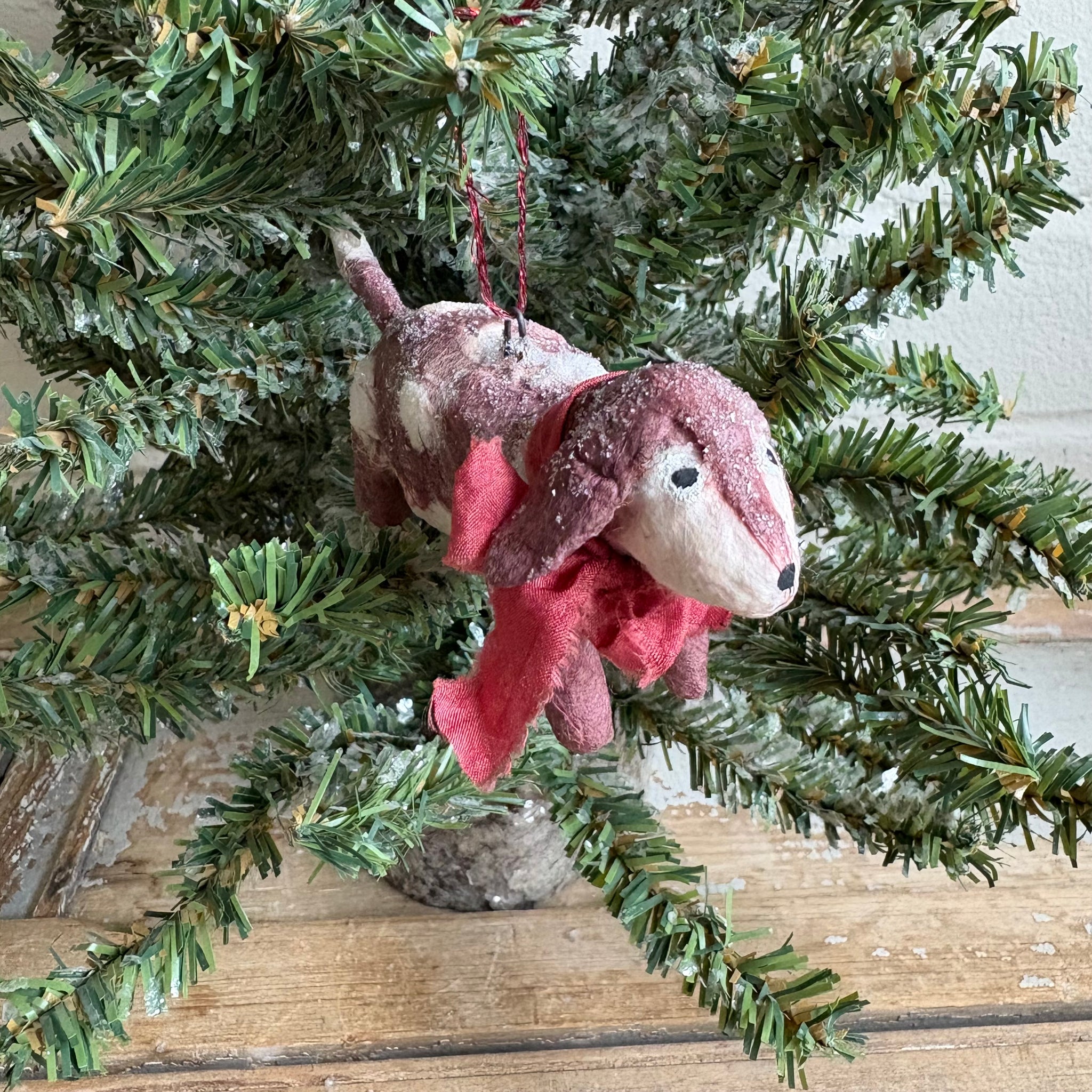 Gorgeous One-of-a-Kind Spun Cotton Animal Christmas Ornaments handmade by a Local Artist in Toronto. Fashioned from a wire form to shape and layered with organic cotton. They are then painted and embellished with vintage ribbons and German glass glitter.