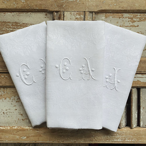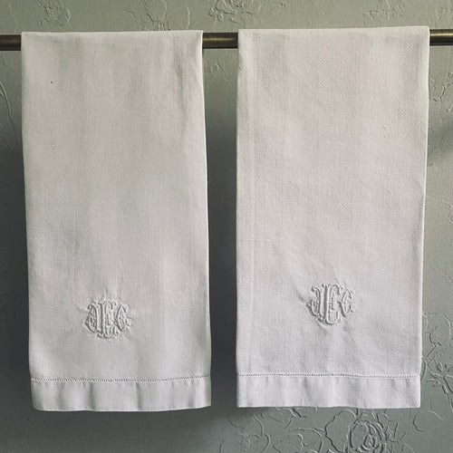 Antique French Linen Monogrammed Hand Towel Set/2 - JCE