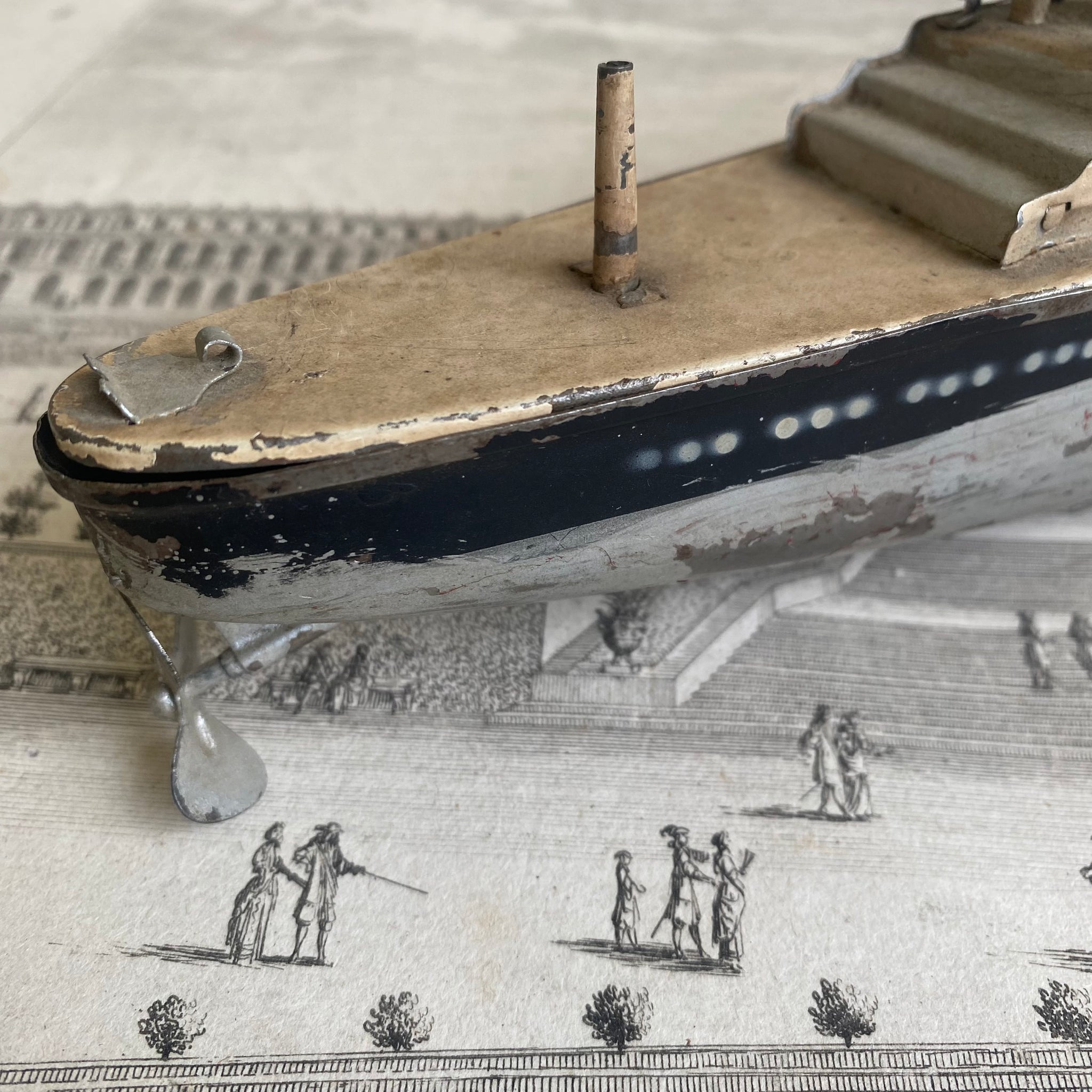 Antique German Tin Steamship Model