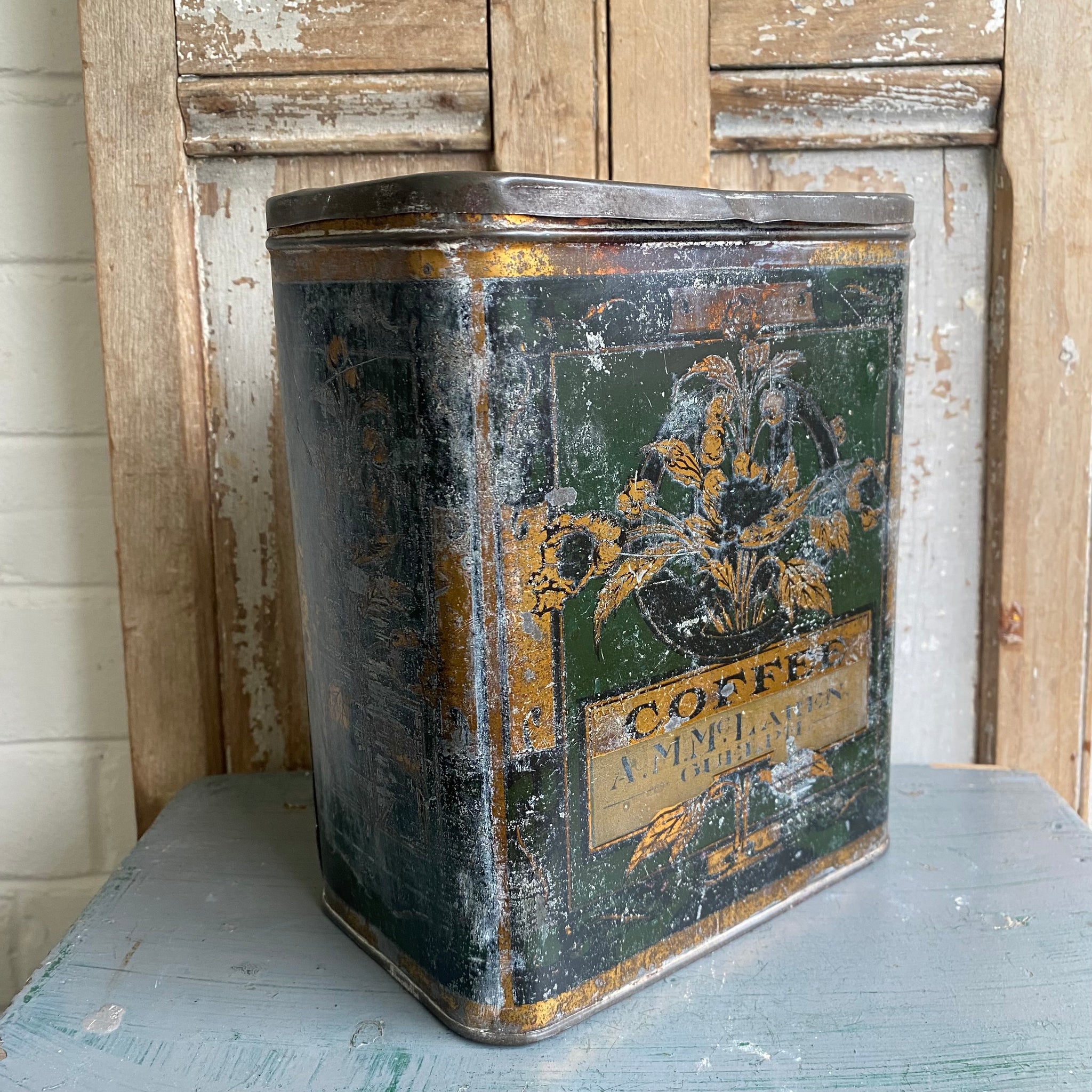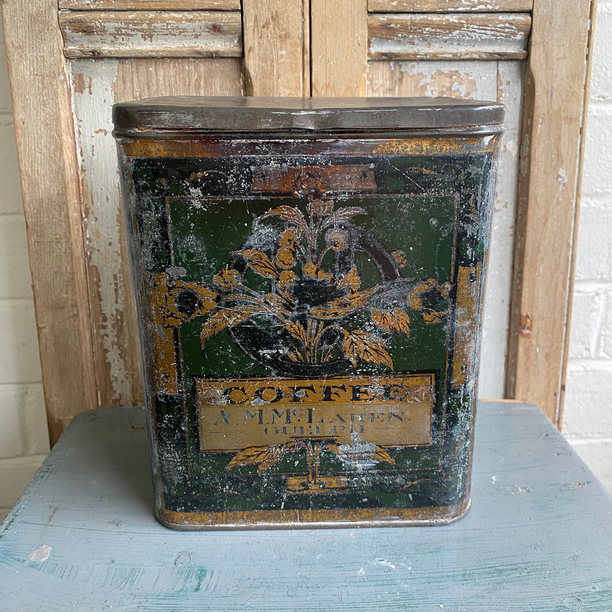 Antique J.L. Fielding Coffee Tin - c1890 Guelph. Lovely green and gold coffee tin in good antique condition for use in your kitchen or for display.